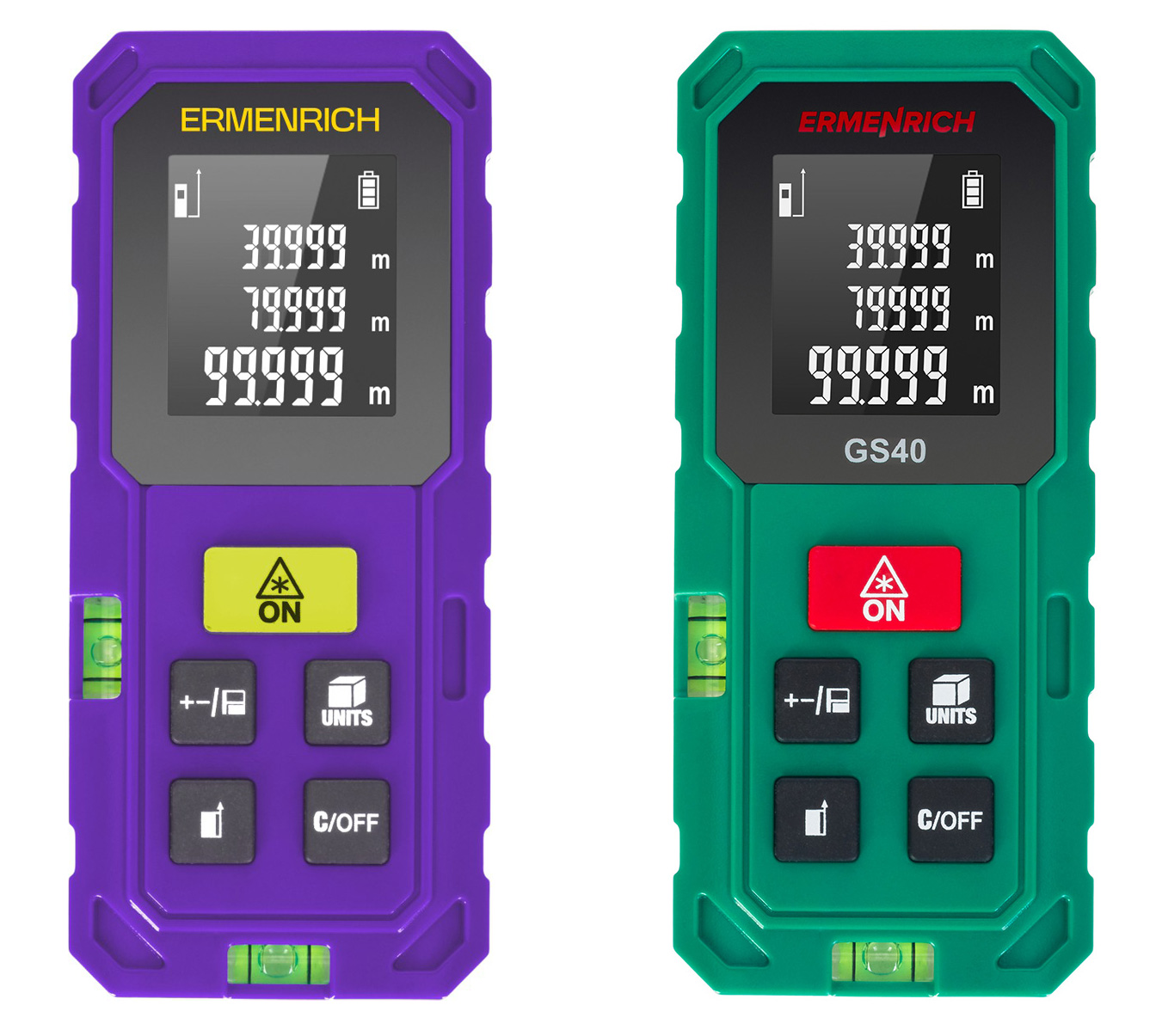 The Ermenrich Reel PLUS GS40 laser meter is a versatile tool for repair and construction, compact and practical thanks to simple controls and a variety of useful functions. The device enables you to accurately measure distance, including under difficult conditions where it is impossible to direct the laser to the desired point in a straight line. For such measurements, the Pythagorean theorem feature is used, which enables you to calculate the distance using indirect measurements.