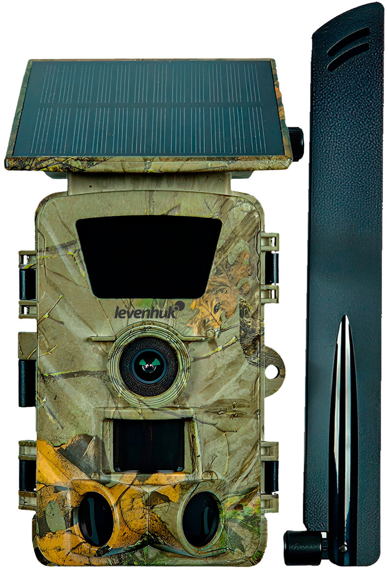 The Levenhuk Trap LTE30 is a digital trail camera that automatically captures photos and videos when it detects movement. It features a high sensitivity PIR motion sensor and 850nm infrared illumination that enables recording in complete darkness without visible light. This trail camera assists hunters in gathering data on game behavior, movement patterns, and active hours. Researchers use it to obtain unique footage of rare or wary animals, tracking migration, behavior, and population numbers. The camera is also well-suited for property surveillance, monitoring unauthorized access, and recording security breaches. With its camouflage finish, the device blends seamlessly into the environment, remaining undetectable to people and animals.